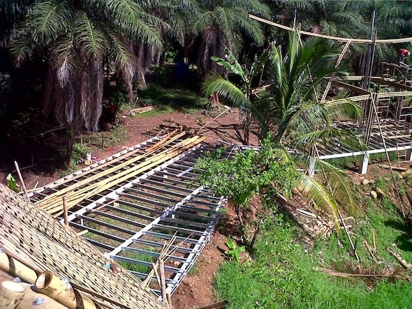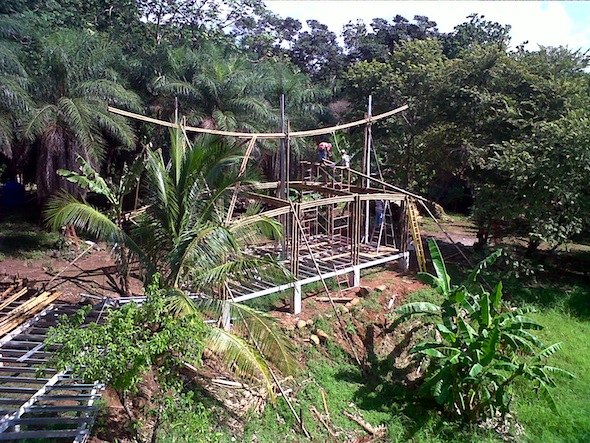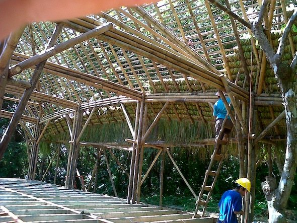 The thatch roof is going up now. Framing of the third module of the villa has also begun.